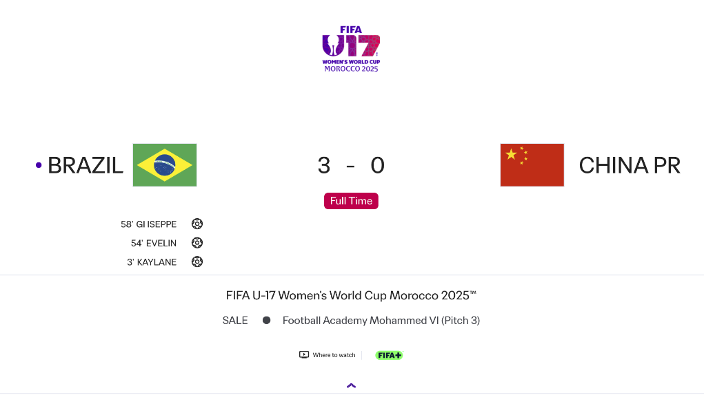 2025-10-30体育,足球,波胆,反波胆,角球,串关,大小球,世界杯,欧洲杯,比分,足球比分,赛事,足球赛事,电竞赛事,体育赛事直播,足球直播平台,世界杯直播,足球直播,体育直播,NBA直播,游戏直播,LOL直播新华社拉巴特10月28日电 在28日进行的2025年U17摩洛哥女足世界杯八分之一决赛中,中国队以0:3负于巴西队,无缘八强。