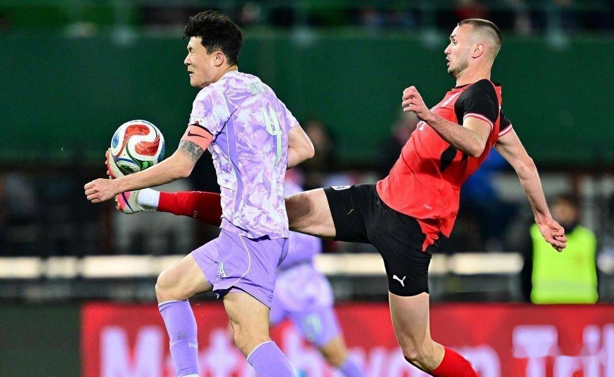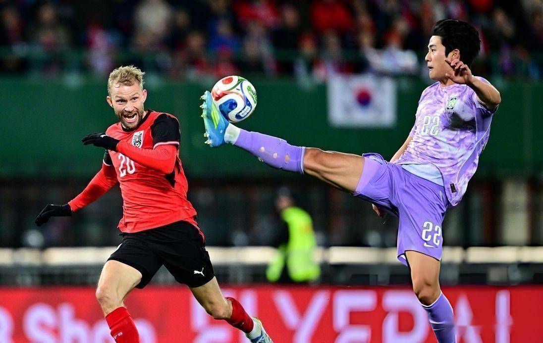 几乎在同一时间,在奥地利维也纳,另一场友谊赛也激战正酣。 韩国队客场挑战奥地利队。 三天前,韩国队刚刚在热身赛中0比4惨败给科特迪瓦队。 本场比赛,韩国队核心孙兴慜、金玟哉、李刚仁等悉数首发。 上半场比赛,双方互有攻守。 第15分钟,孙兴慜从中场带球长驱直入,在禁区前沿一脚爆射,可惜将球打高。 第38分钟,韩国队获得角球机会,金玟哉在后点的强力头球攻门被奥地利门将彭茨在门线上神奇化解。 整个上半场,韩国队控球率41%,射门6次1次射正,奥地利队则只有1次射门且未射正。
