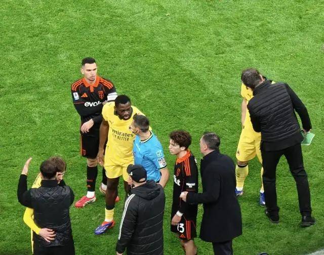 随后的比赛,1比1的比分并未被改写,但也不缺少精彩的故事。第80分钟,AC米兰主教练阿莱格里因为对法布雷加斯不依不饶,被红牌罚下。起因是法布雷加斯在场边拽住了准备抢球的萨勒马克尔斯。