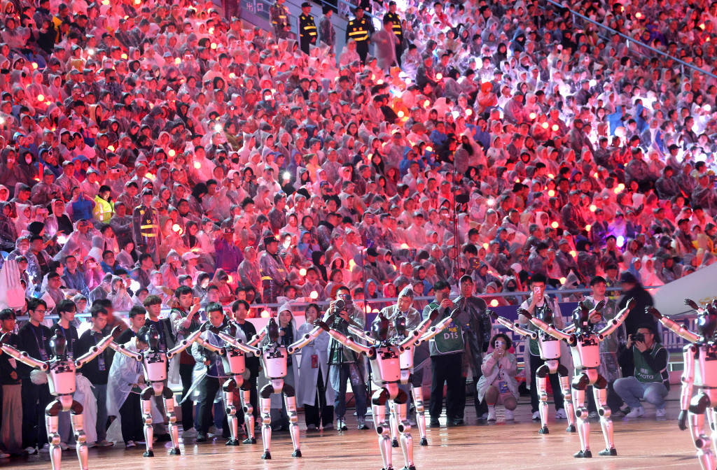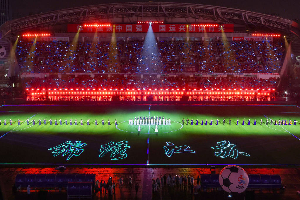 新赛季的苏超开幕式放在了常州举行,开场特邀嘉宾周深演唱了包括苏超主题曲《热烈盛开》在内的三首歌曲。与此同时,在常州奥林匹克体育中心体育场,代表着“十三太保”的13幅飞天屏悬挂于夜空,300台机器人构成的表演规模则创下行业纪录。此外,还有40辆卡丁车助阵表演。